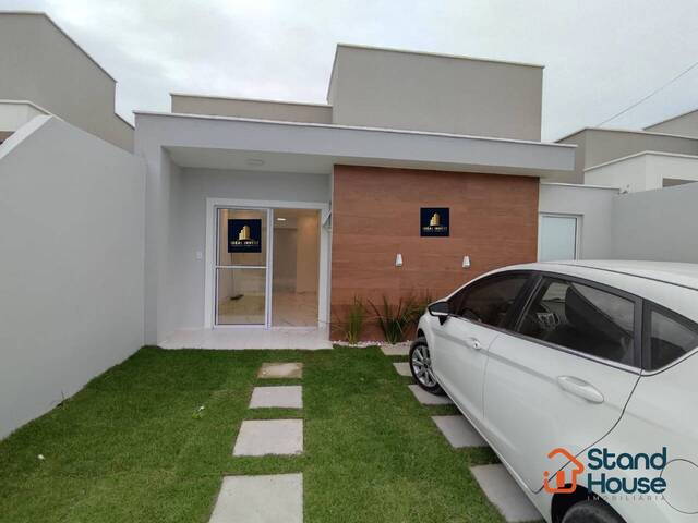 Vendo casa no condomínio América House, tudo de primeira, no sim toda no porcelanato, cozinha ampliada, banheiros no porcelanato cozinha ampliada, com possibilidade de você montar sua área gourmet, gesso rebaixado com luminárias, terreno excedente, 1 metro a mais de fundo que a casa padrão do condomínio são dois quartos ambos com suíte + um lavabo.